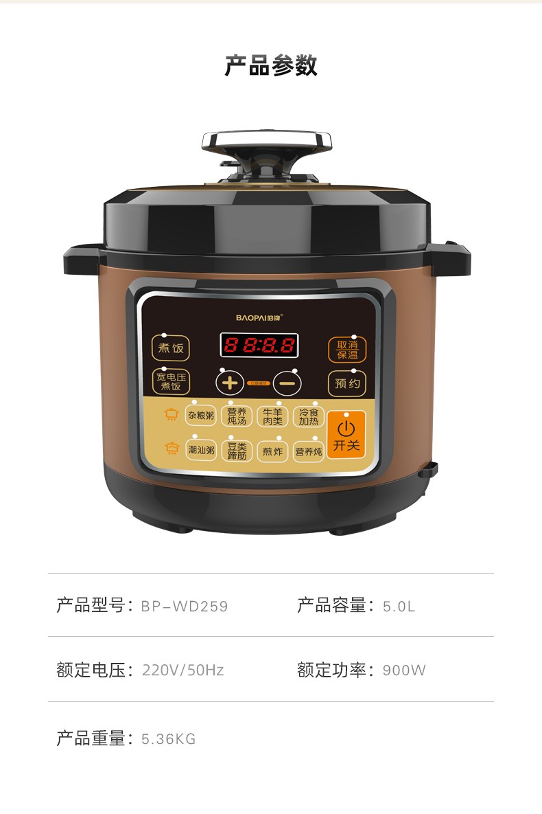 这里的豹牌 BP-WD259多功能电压力锅5L大容量家用压力锅银行保险礼品批发
